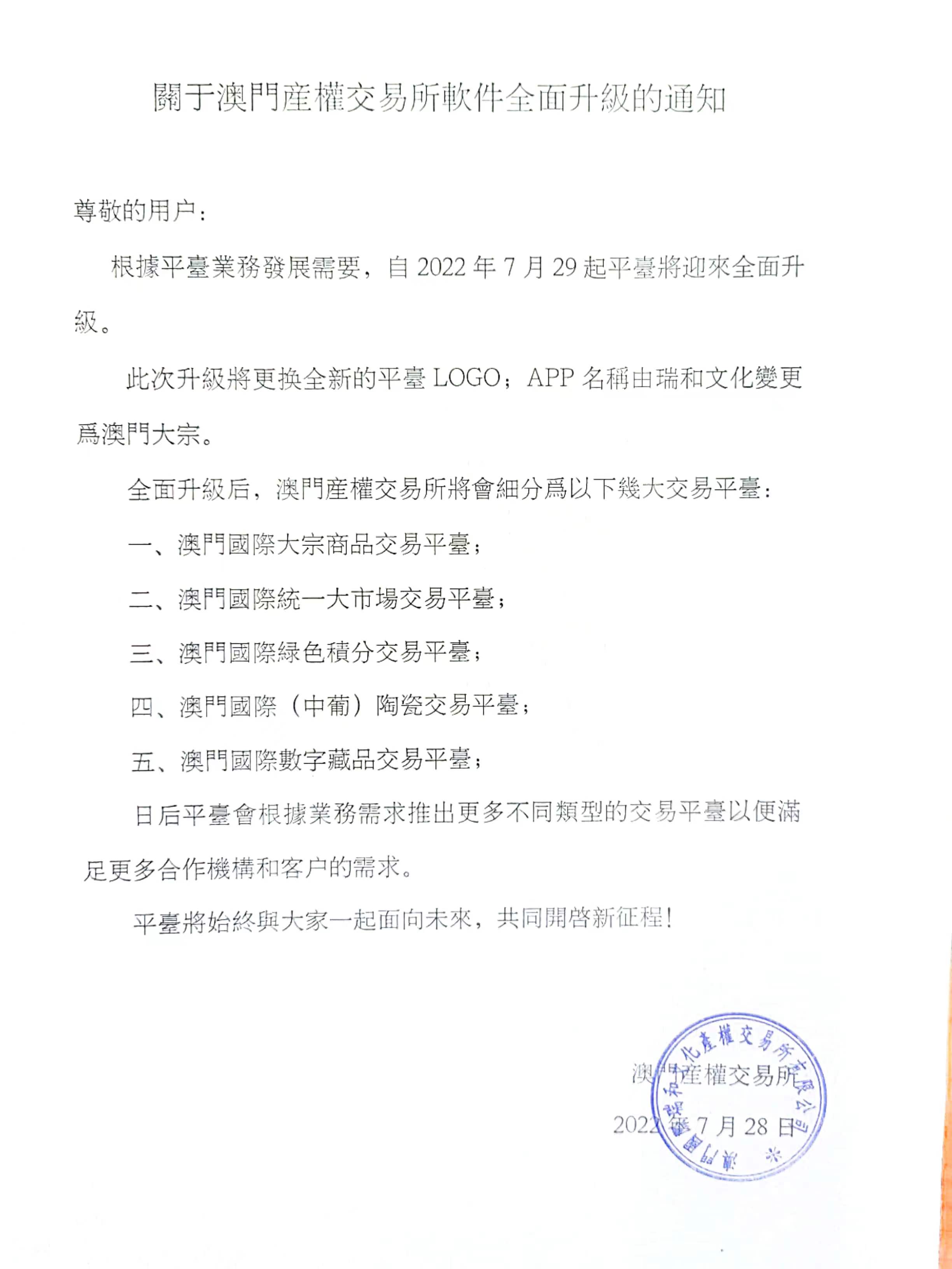 關于澳門産權交易所軟件全面升級的通知