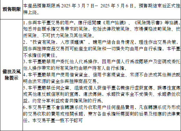 經澳門國際易貨交易平臺評估審核,准予《乾春堂1號》產品于2025年3月7日在本交易平臺正式開啓预售,具體事項公告如下: